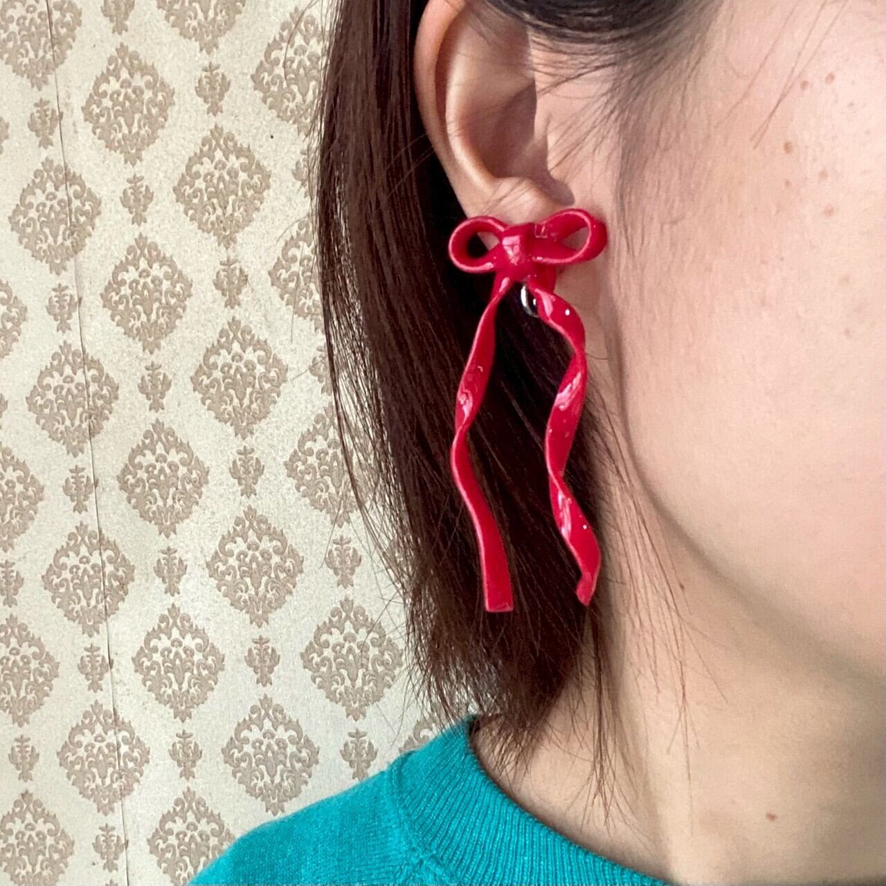 本当に耳元にリボンを結んでいるようなリボンのくるくるは、全て手作業によるもの。