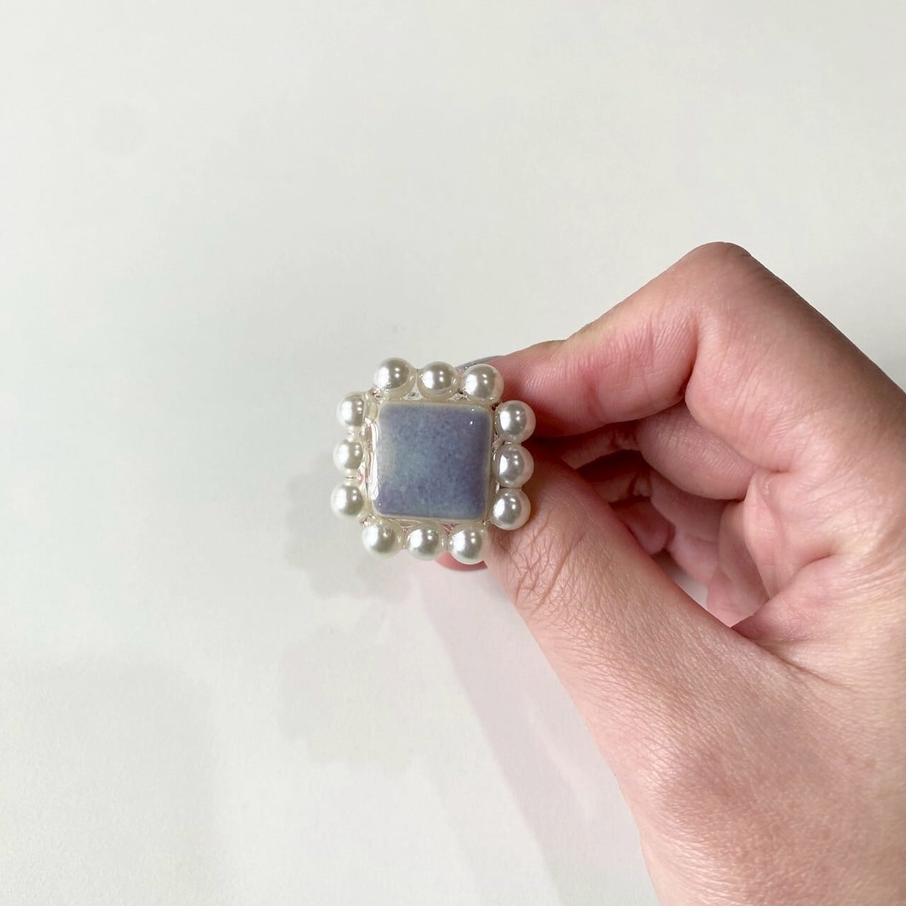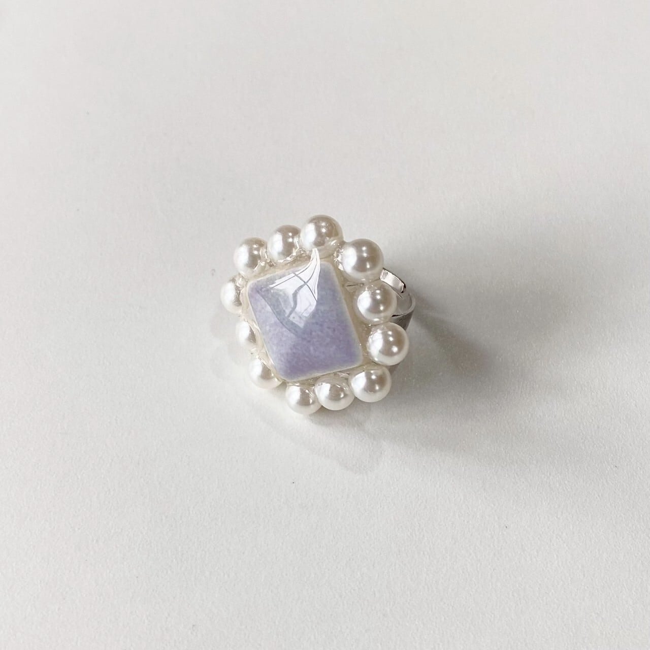 大きなタイルとたくさんのパールがキュートで上品なリング。