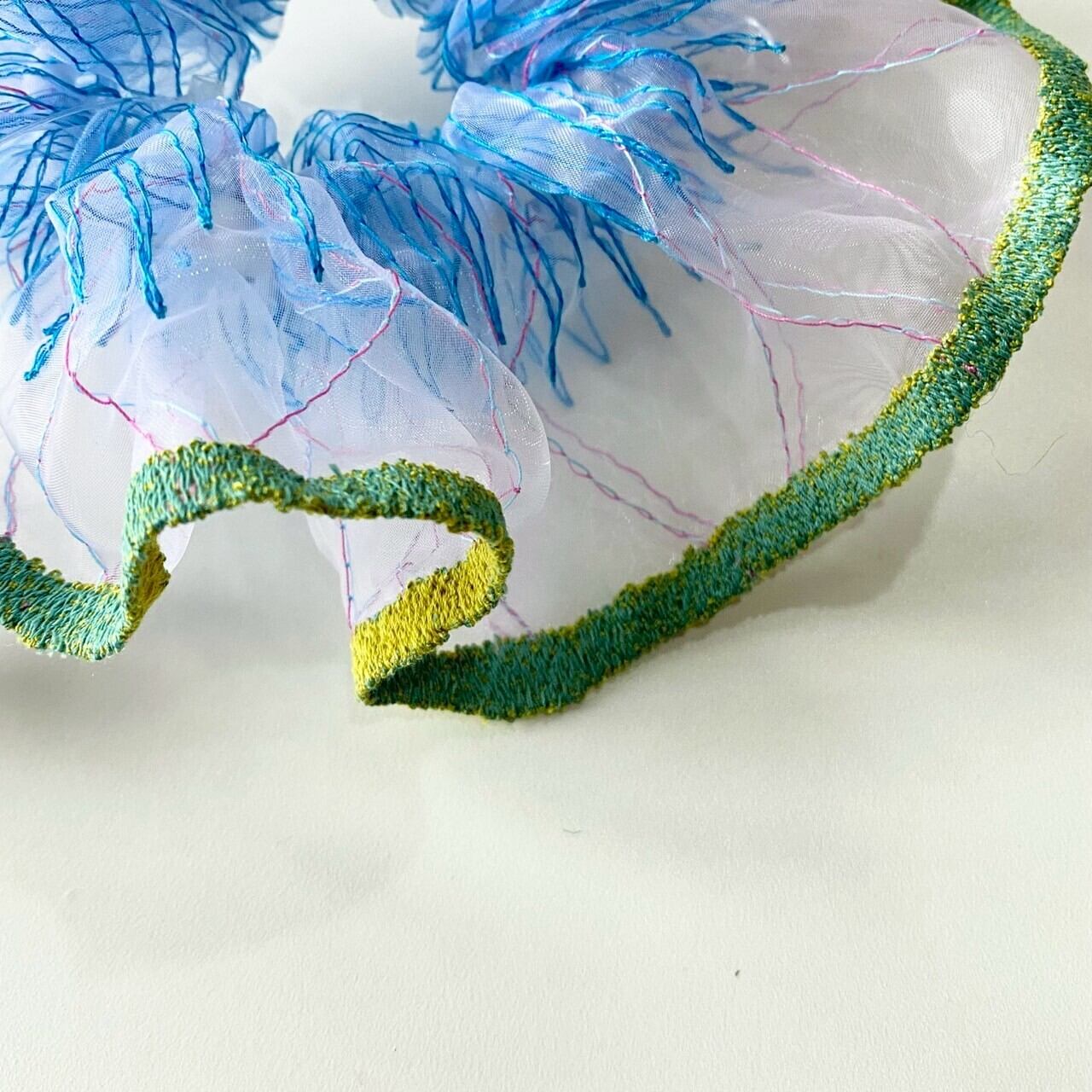 腕につけるだけでも存在感のあるフリルのようなシュシュです◎