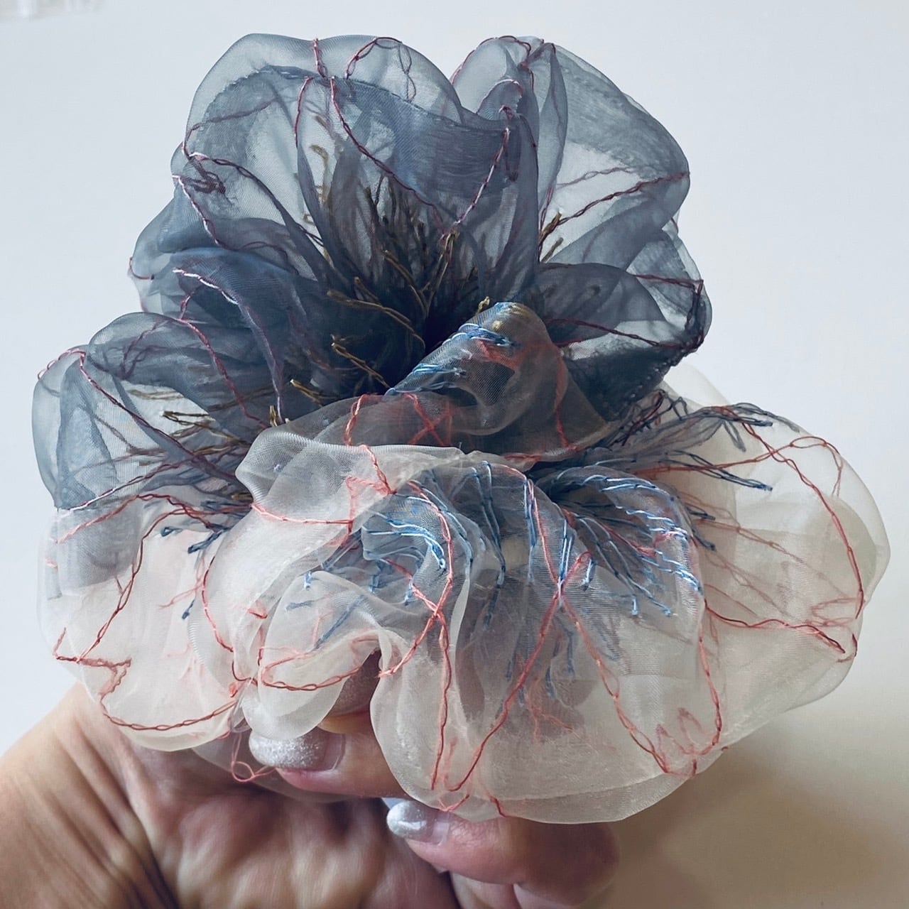 グレーのオーガンジーは落ち着いた印象でありつつも、光を通してとっても上品な印象。