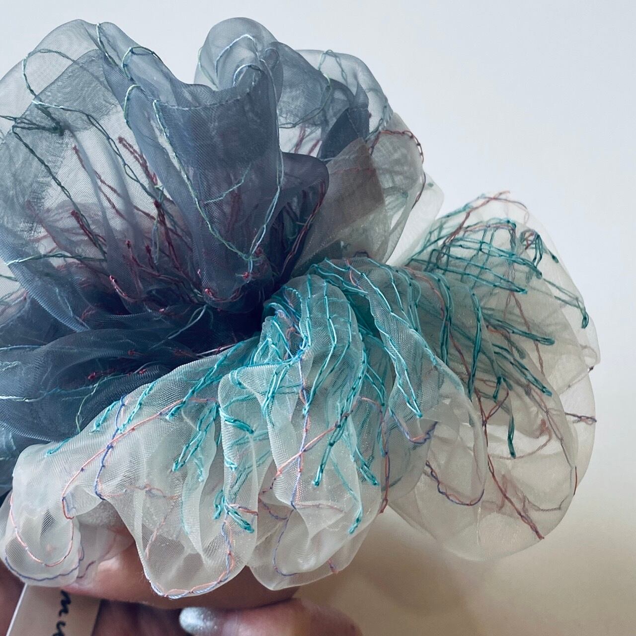 bi-color scrunchie gray turquoise