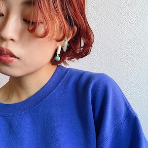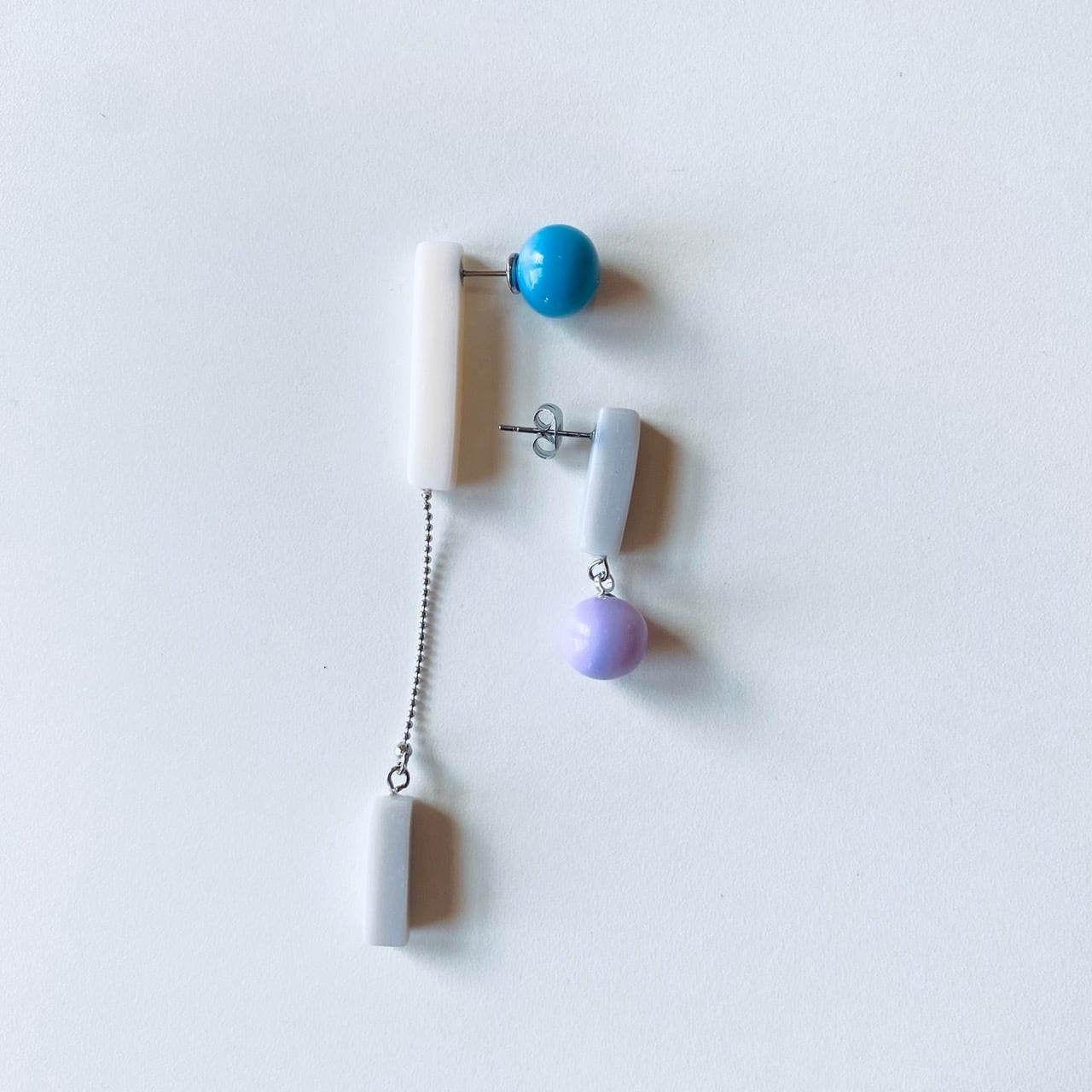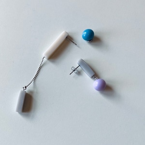 積み木のような形が可愛いアシンメトリースタイルのピアス。