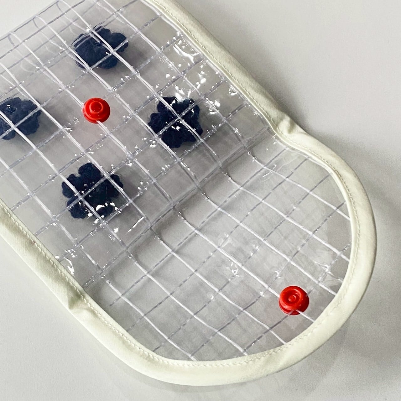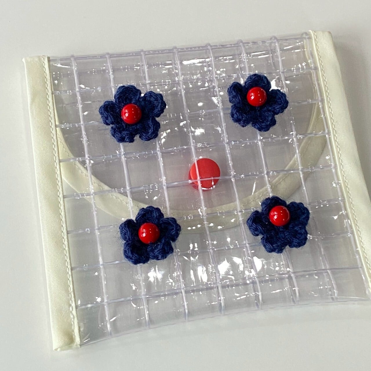 たくさんのお花がついたポーチ、レギュラータイプ。